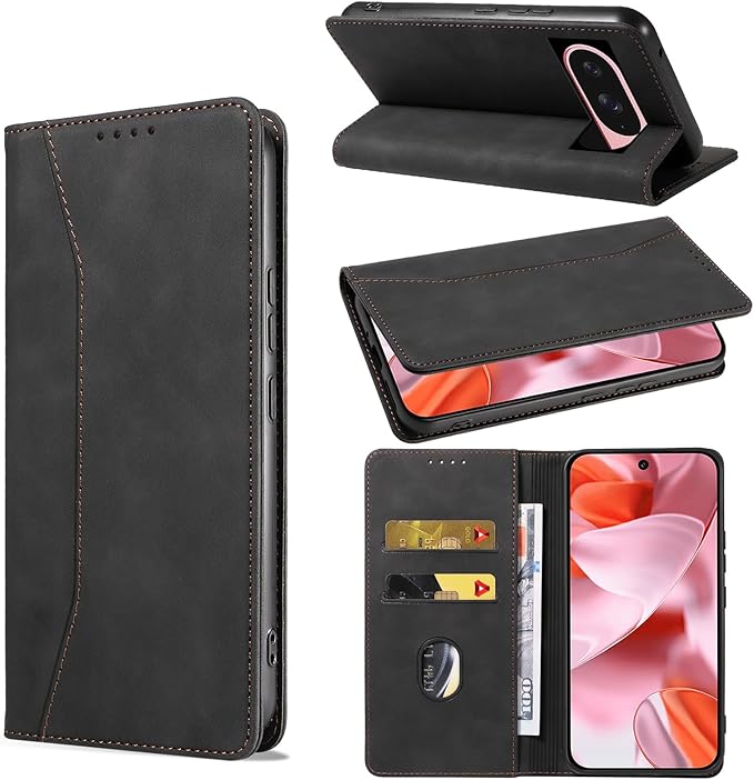 KWATUNG google pixel 10/10Pro 用 ケース pixel 9/9Pro 用 ケース 手帳型 おしゃれ グーグルピクセル10 用 ケース 手帳型 肌感レザー 内蔵マグネット 耐衝撃 カード収納 スタンド機能 googleピクセル10 用 スマホケース Pixel 9 ピクセル9プロ スマホケース Pixel 9 9Pro 10 10Pro 用 ブラック