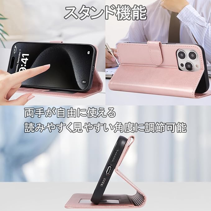 【スタンド機能】このケースは便利な横置きスタンド機能が付いており、画面側のカバーを折り返すだけで、携帯電話が自立し、手や腕を自由に使って、長時間のビデオ視聴やビデオ通話、ウェブ会議などを快適に楽しむことができます。また、横置きスタンド機能はお好みの角度に自由に調整できるので、長時間の列車や飛行機での暇つぶしにも便利です。