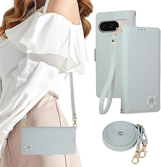 用の Google pixel 10 / 10 pro ケース 手帳型 ショルダー さくら スマホケース グーグル ピクセル10 ケース 手帳型 オシャレ 財布型 カード収納 携帯ケース pixel10 カバー ストラップ付き スタンド機能 耐久性 ピクセル10pro 手帳型ケース 可愛い 人気 女性 上品 桜の花 贈り物(ブルー)