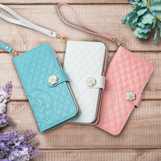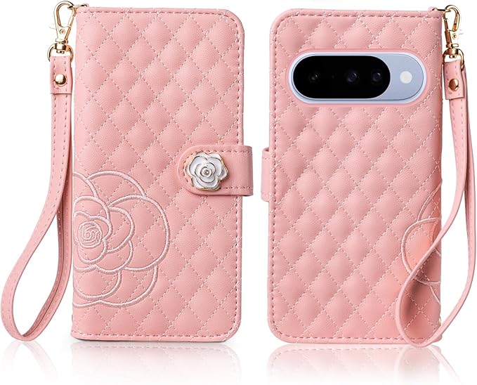 SZJAMIE 対応 手帳型ケース Google Pixel 10 / 10 Pro ケース 薔薇と山茶花刺繍 ピクセル10 / 10Pro カバー 手帳型 花柄 おしゃれ 可愛い 女性向け 手触り柔らかい 耐衝撃 スタンド カード収納 財布型 全面保護 ストラップホール&ハンドストラップ付き プレゼントに最適 (対応 Google Pixel 10 / 10 Pro, ピンク)