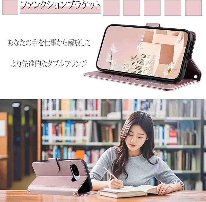 カード収納:ピクセル10 スマホケース ショルダー の内部には3つのカードスロットと1つの空きポケットがあり、交通系カード、日常的に使う銀行カード、写真なども簡単に収納できます。前面はマグネットボタンでしっかりと閉じられるため、財布としても活用可能です。これにより、スマホだけを持って外出して買い物ができるようになります。さらに、pixel10 pro ケース 手帳型 ショルダー は映画鑑賞やビデオ通話の際にスタンドとして折りたたむことができ、お好みの角度で動画視聴や読書などを楽しむことができます