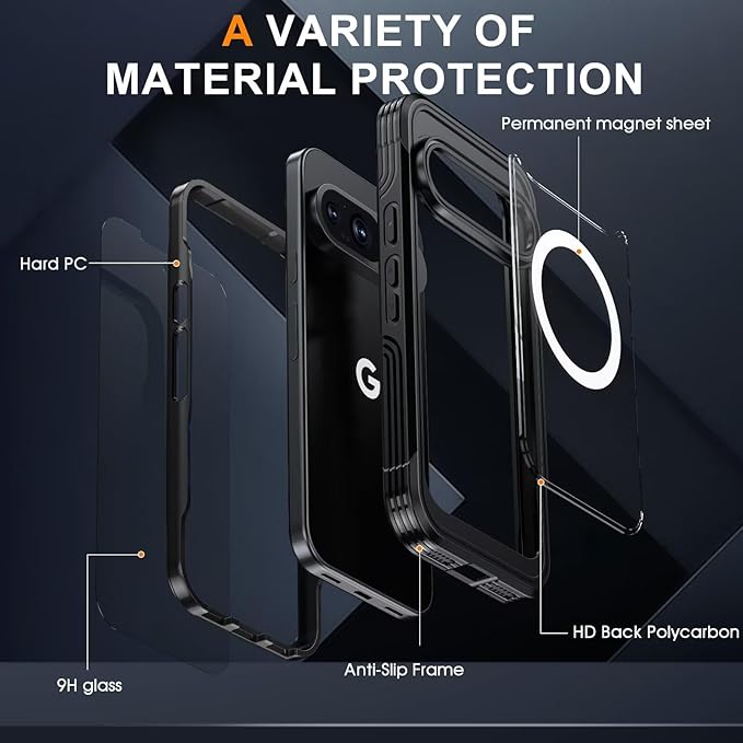 対応 Google Pixel 10/10Pro ケース MagSafe対応 全面カバー 両面ケース 液晶フィルム付き 360度全面保護 マグネット Qi充電 耐衝撃 アウトドア,ブラック