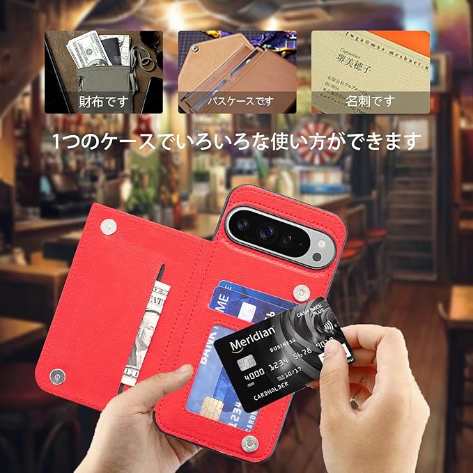 【OULO1】対応GOOGLE PIXEL 10 PRO XL ケース カード収納 手帳型 ケース ピクセル10pro xl レザー 携帯 ケース 手帳型 耐衝撃 軽量 スタンド機能 薄い 背面 IC カード入れ 手帳型 財布型 カバー(レッド)グーグル Pixel10ProXL Red