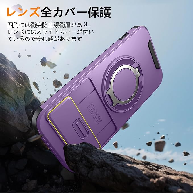 Google Pixel 10 Pro XL 用 ケース リング付き スライド式カメラカバー 隠しスタンド 耐衝撃 スタンド機能 縦横両対応 車載ホルダー PC TPUバンパー 防塵 人気 落下防止 滑り止め 指紋防止 ピクセル 10 プロ XL カバー 紫 MJJ-1065-10-04