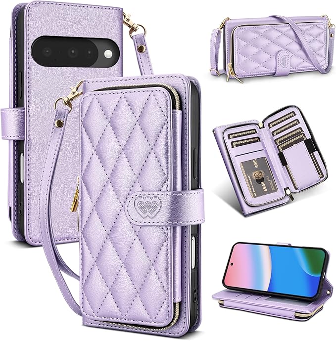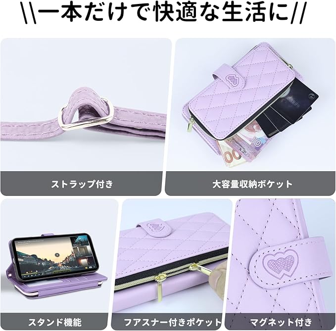 【Succtopy】用の Google Pixel 10/Pixel 10 Pro ケース 手帳型 ショルダー 肩掛け 斜め掛け カバー googleピクセル10プロ/ピクセル10 ケース 手帳型 上質PUレザー 携帯カバー おしゃれ 刺繍 お洒落 大容量収納 カードポケット付き 小銭入れ 財布型 スマホケース スタンド機能 ストラップと首掛け付き 磁気バックル付き(ライトパープル)6.3インチ