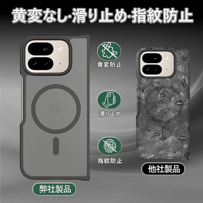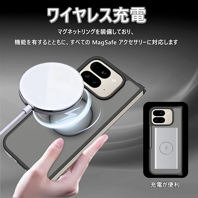 対応 Google Pixel 10 Pro Fold 用の ケース ワイヤレス充電 米軍MIL規格 MagSafe対応 耐衝撃 半透明 マット仕上げ 滑り止め 黄ばみ防止 指紋防止 (マットブラック)
