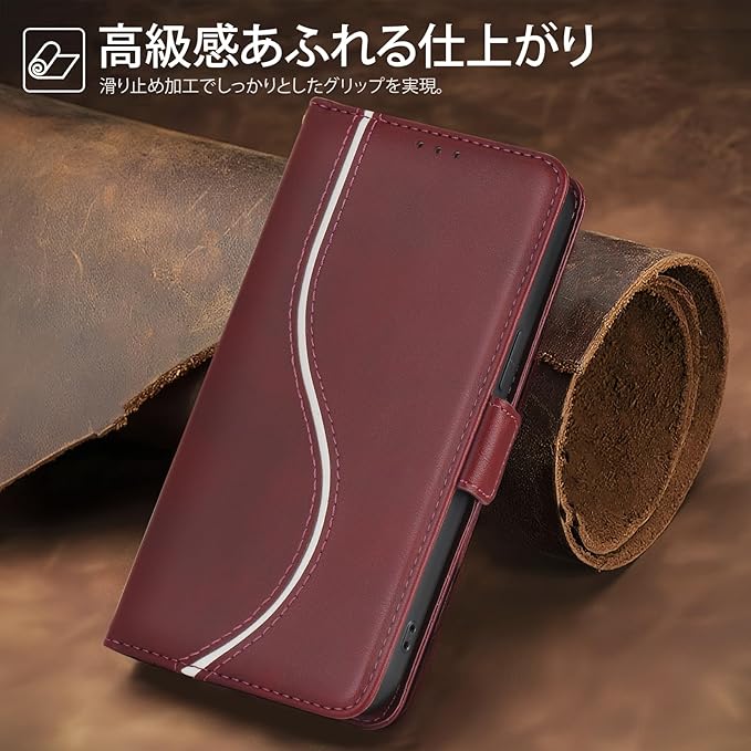 用の google pixel 10 pro xl ケース 手帳型 カード収納 グーグル ピクセル10プロ XL カバー 強い磁気吸引 高級レザー PUレザー 衝撃吸収 キャッシュポーチ リストストラップ 横置きスタンド機能 財布一体型 全面保護ー 落下防止 6.8インチ(レッド)