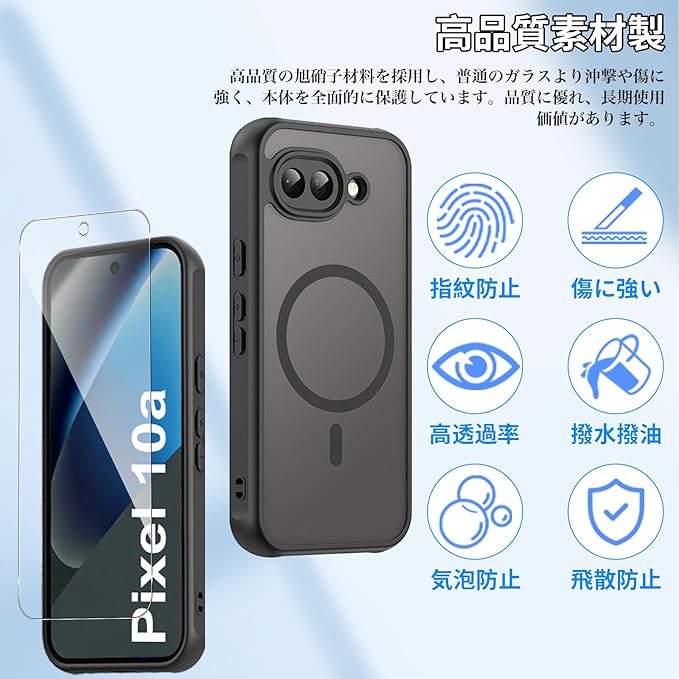 【1個+2枚セット】For Google Pixel 10a ケース(1個 MagSafe対応)+ガラスフィルム(2枚) Greerass 保護ケース ガラスフィルム付き MagSafe対応 薄型 超軽量 耐衝撃 擦り傷防止 指紋 汚れ防止 手触り良い 着脱簡単 (ブラック)