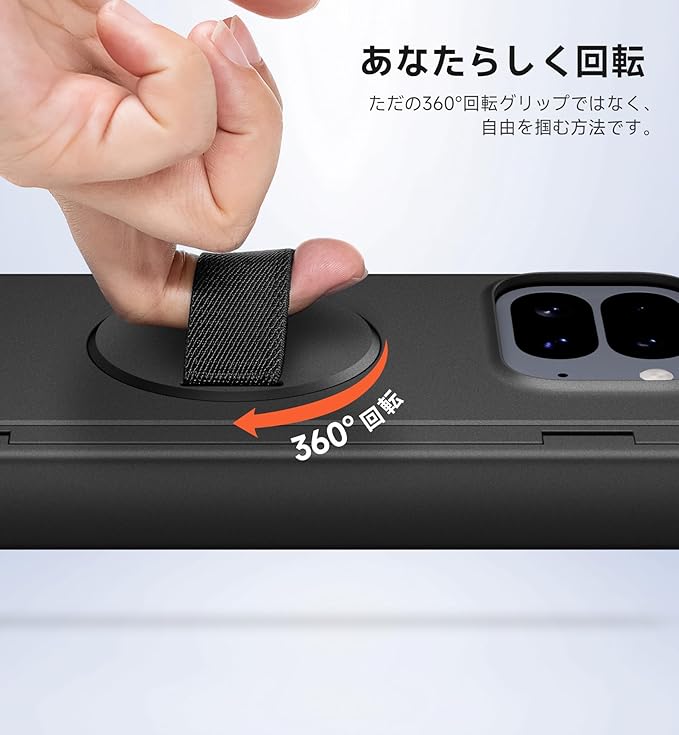 360 回転式グリップ:360 回転する柔軟なグリップで、あらゆる動きに柔軟に対応します。より便利で、リラックスして、自由に操作できます。快適なグリップで、スマートフォンを安定して保持できます。