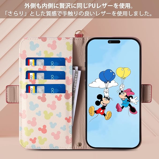 【カード収納】:携帯電話ケースのカード収納機能は、ユーザーに大きな利便性をもたらします。 ケースには表面にカードポケット、内側にはカードスロットが3つと札入れが付いており、名刺やマンスリーパスの収納スペースとしても最適です。