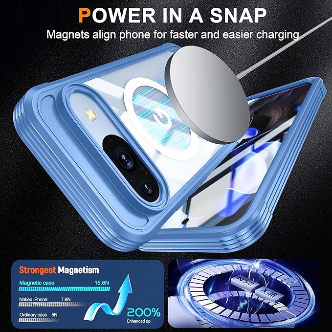 Google Pixel10 / Pixel 10 Pro ケース MagSafe対応 全面カバー 両面ケース ガラスフィルム付き 360度全面保護 ピクセル10 プロ カバー 耐衝撃 アウトドア ,薄ブルー