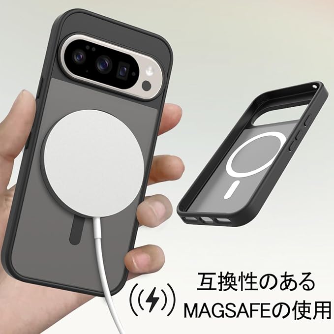 KPNS スマホケース 対応 Google Pixel 10/Pixel 10 Pro 用の ケース 耐衝撃 滑り止め 指紋防止 米軍MIL規格 マット仕上げ Magsafe 対応 ワイヤレス充電 携帯ケース (ブラック)