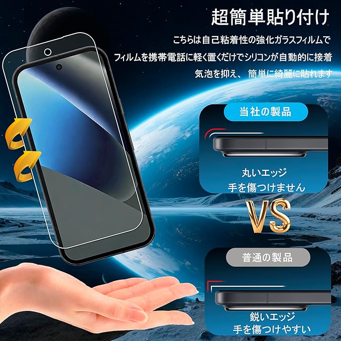 【飛散防止&気泡防止加工】安全・簡単に貼れるGoogle Pixel 10A フィルム、万が一の落下や衝撃によるガラス割れ時にも、飛散防止加工により破片が飛び散らず、安全に使用できる設計です。また、自己吸着タイプのガラスフィルムは位置を合わせて軽く置くだけでしっかり吸着し、気泡の発生を抑制。初めての方でも簡単に貼り付けでき、貼り直しも可能で失敗の心配がありません