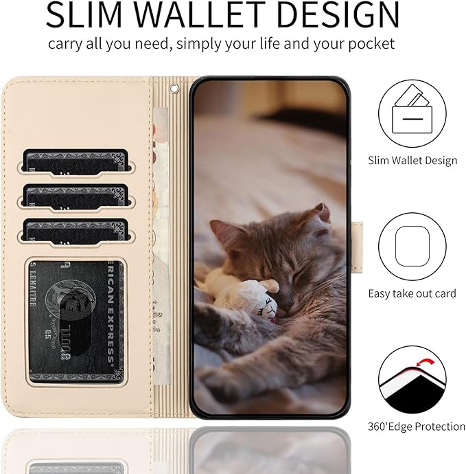対応 Google Pixel 7A ケース 手帳型 可愛い 猫柄 グーグル ピクセル 7A 携帯カバー 蝶の花柄 スマホケース おしゃれ カード入れ 財布型 Pixel 7A カバー 動物柄 カード収納 スタンド機能 軽量 便利 内蔵マグネット式 ベージュ 純色シンプルデザイン - Beige