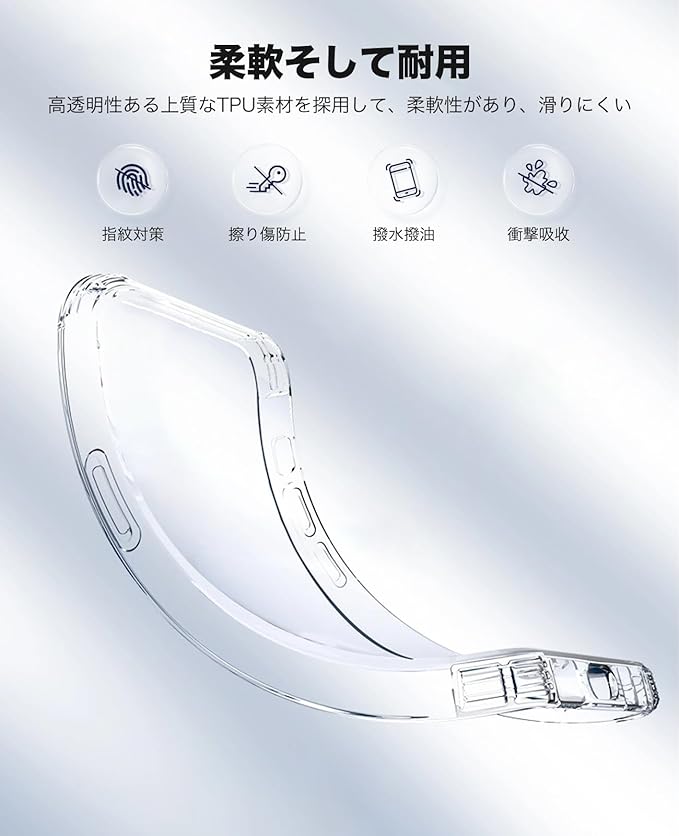 【驚くほどの透明度・黄変防止】高級熱可塑性ポリウレタン(TPU)素材を採用することで、従来品と比べてより透き通った透明感を保つことができ、長期間経ってもケースが黄変しにくく、スマホ本来の外観を存分にアピールすることでできます。