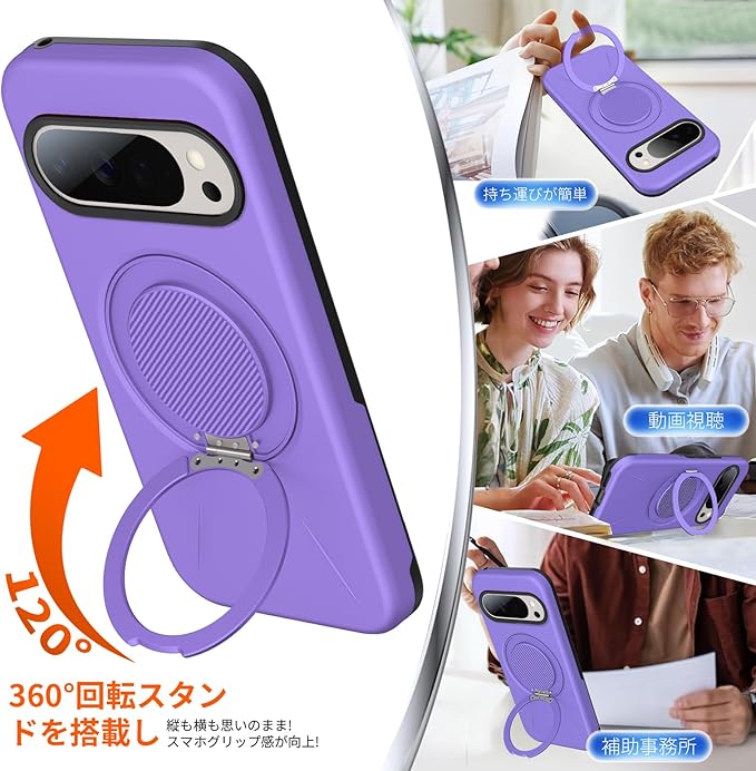 対応 Google Pixel 10 Pro XL 用 ケース magsafe対応 リング付き 耐衝撃 米軍MIL規格 リング マグネット搭載 ワイヤレス充電可能 多機能360度回転 指紋防止 黄変防止 車載ホルダー 紫 C99-pix10pxl-07
