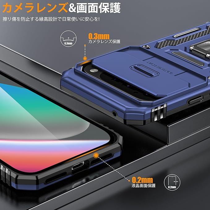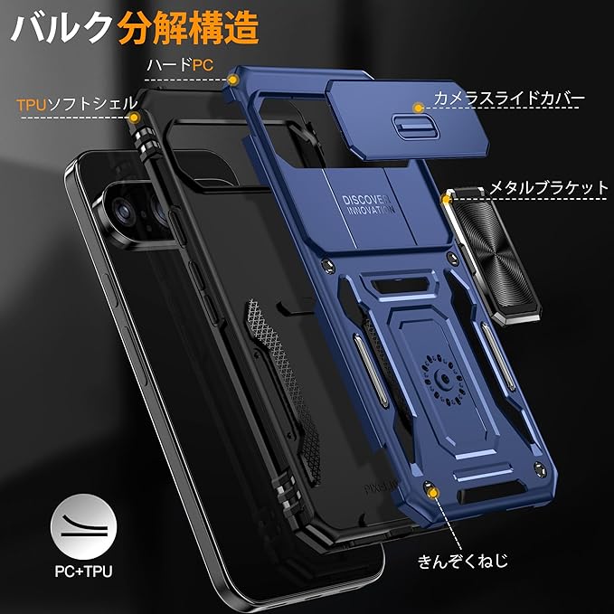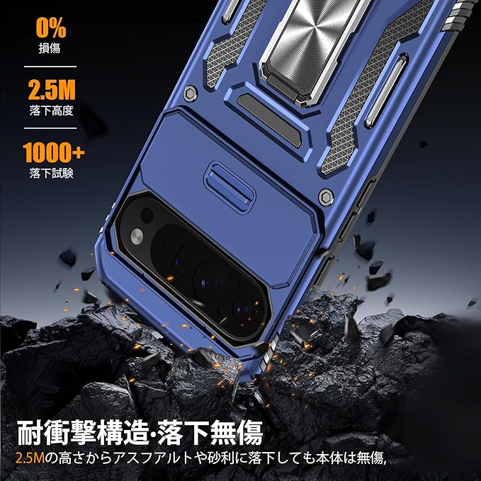 Google Pixel 10 Pro XL 用ケース リング付き 耐衝撃 レンズ保護 TPU+PC 二重構造 バンパー 車載ホルダー対応 360 回転 スタンド機能 スマホカバー グーグル ピクセル10 pro xl 用ケース 一体型 携帯カバー 青 J16-23