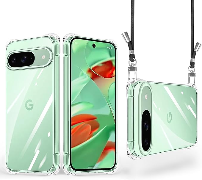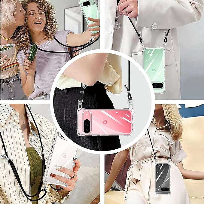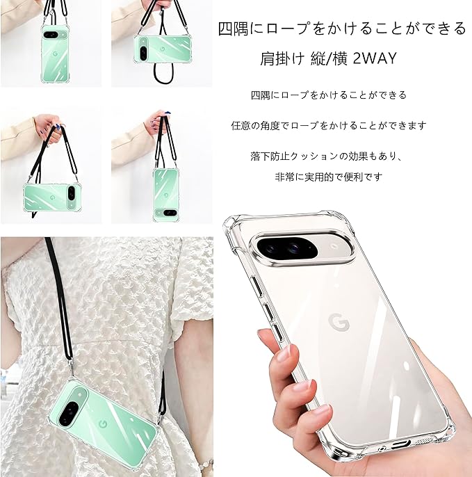 クリア Google Pixel 9 ケース/Pixel 9 Pro ケース ストラップ付き ショルダー 縄掛けケース 耐衝撃 ピクセル 9/9Proカバー 透明 薄型 軽量 TPU スマホケース 肩掛け 斜めかけ 紐付き 長さ調整可能 取り外し可能 落下防止 紛失防止 ワイヤレス充電対応 (クリア)