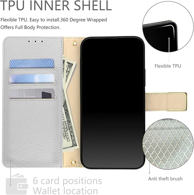【上質な素材とスタンド機能】外部は上質なPU素材を採用しており、普通のレザーより、耐熱性と柔軟性を一層アップされ、肌のような手触り、夏でも手汗で変な匂いが出てきてません。インナーケースはソフトなTPU素材で、全面保護を与える同時に着脱しやすいです、スマホ本体への損傷の心配ありません。スタンド機能を搭載しており、お好きな角度を調整でき、両手が解放され、お気軽に読書や動画視聴を楽しむことができます。