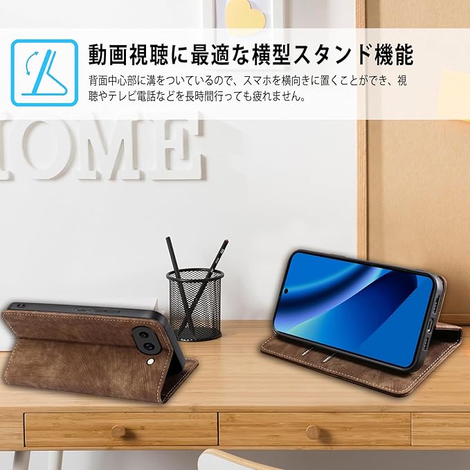 スタンド機能:手帳型は薄型式、横置きにも容易で、お好きな角度で簡単に調整でき、勉強とか暇をつぶすとかラクラク