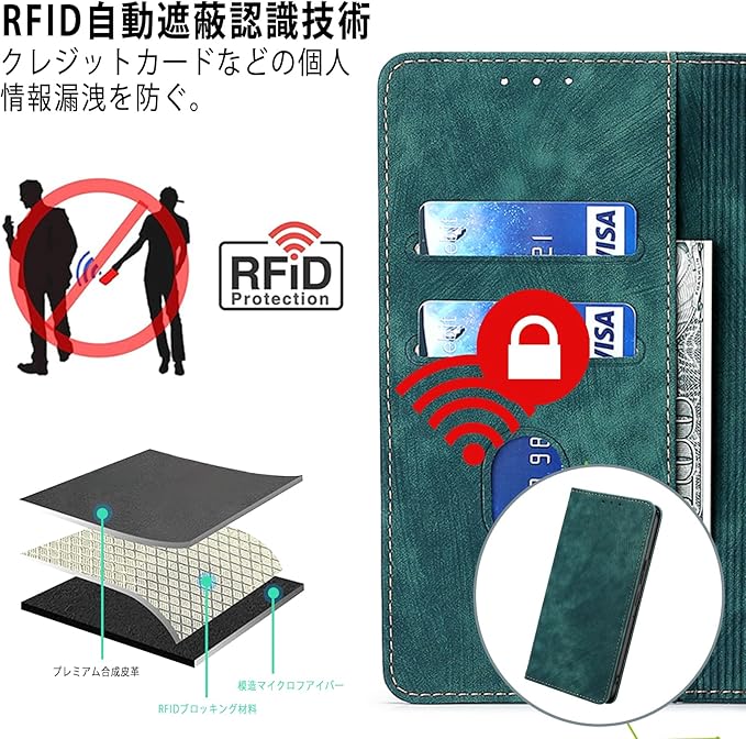 【素材】:NicMoolスマホケース手帳型外部は上質な合皮レザー素材を採用しており、傷や埃を防ぐことができます、滑りにくく、指紋、油分などもつきにくく。外部のPUレザー+内部の黒TPUという二重保護で、衝撃減少の機能性が抜群、スマホをしっかりと守ることができます。インナーケースは弾力性の柔軟黒TPU素材を採用しており、角までしっかり保護できるケースです、柔軟性があり本体への装着脱着も簡単です。注:磁気を帯びているため、ワイヤレス充電はお勧めしません。