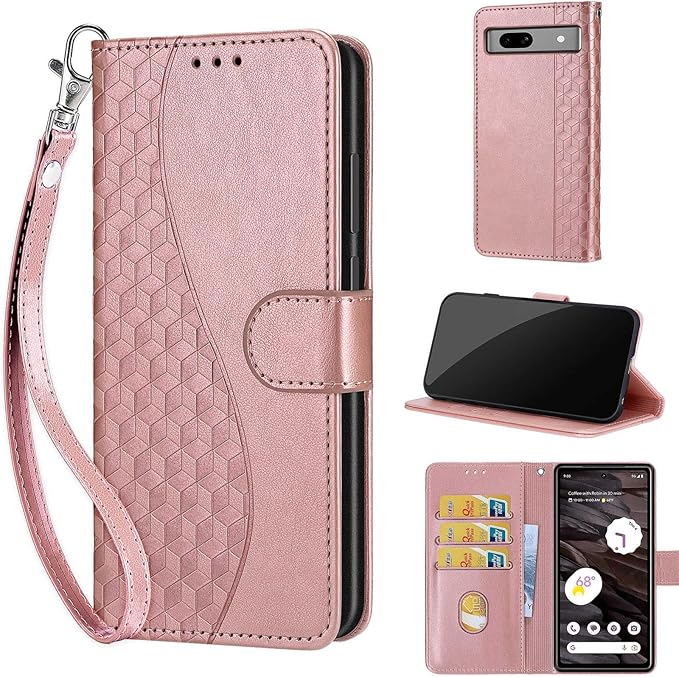 Google Pixel 7a ケース 手帳型 対応 Pixel 7a 財布型 携帯カバー Pixel7aスマホケース 高级PUレザー 耐衝撃 耐摩擦 全面保護 ホルダーバンプパタカード収納 軽量 手触りが良い 人気上品な シンプル気質 ギフト ローズゴールド