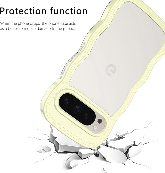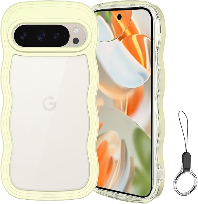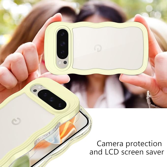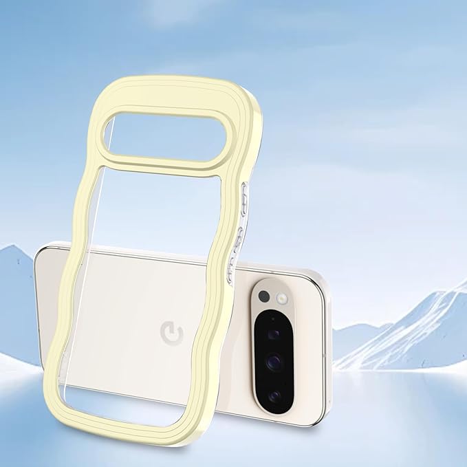 Google Pixel 10/10 Pro/9/9 Pro ケース クリア ウェーブ ピクセル 10/10 Pro/9/9 Pro TPU波状フレーム うねうね グーグル ピクセル10/10 Pro/9/9 Pro 滑り止め スマホケースウェーブ デザイン 手にフィット 韓国 可愛い 女性用 女子向け 透明 ケースカバー 人気 落下防止 耐衝撃 ストラップホール付き グーグルピクセル10/10 Pro/9/9 Pro なみなみ ワイヤレス充電対応(Google Pixel 10/10 Pro/9/9 Pro-イエロー)