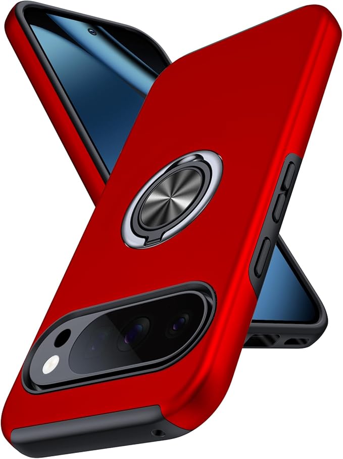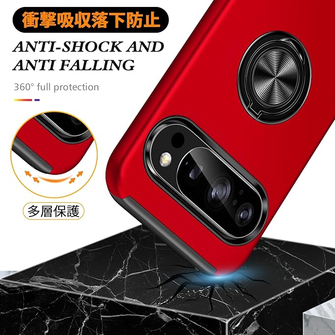 対応 Google Pixel 10 / Pixel 10 Pro 用の ケース リング 耐衝撃 米軍MIL規格取得 TPU+PC 衝撃吸収 カバー レンズ保護 リングつき 指紋防止 360 回転 車載ホルダー対応 スタンド機能 防塵 薄型 落下防止 擦り傷防止 10/10 Pro 携帯電話カバー 赤C85-pix10-02