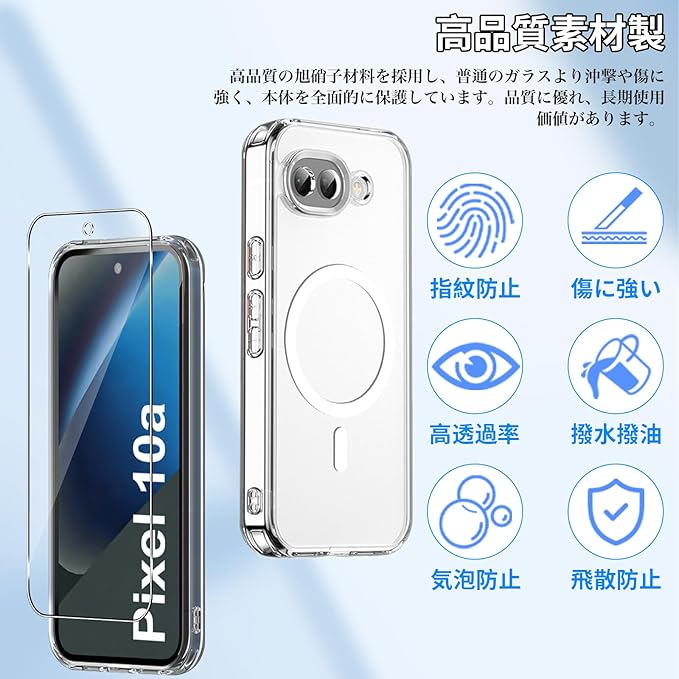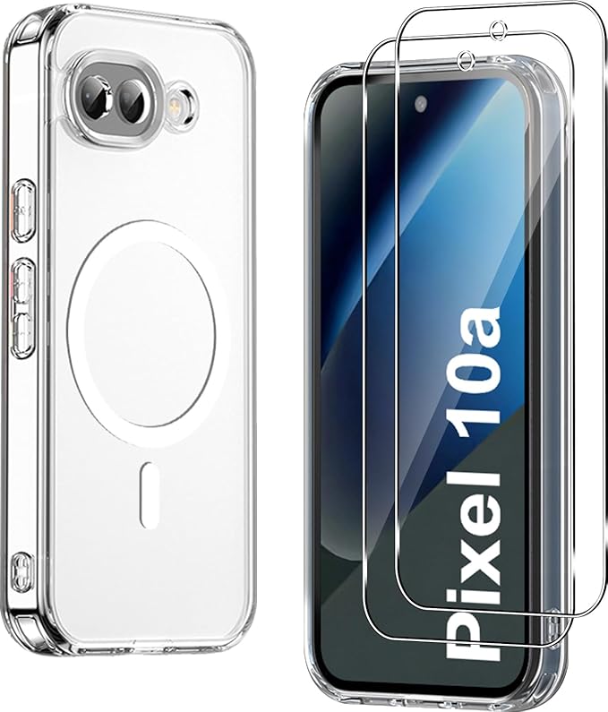 【1個+2枚セット】For Google Pixel 10a ケース(1個 MagSafe対応)+ガラスフィルム(2枚) Greerass 保護ケース クリア ガラスフィルム付き TPU+PC素材 MagSafe対応 耐衝撃 衝撃吸収 全面保護 カメラ保護 薄型 軽量 滑り止め 黄ばみ防止 指紋防止 透明 耐久 (クリア)