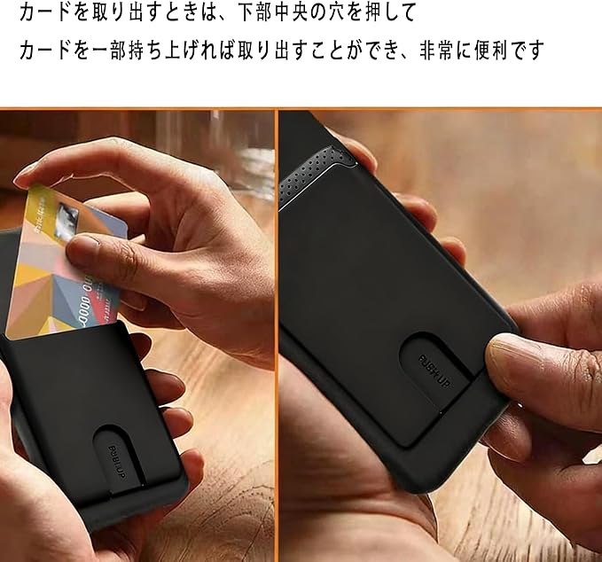 【カードホルダー】シリコーンゲル製のバックカードホルダー付き。日常使いに適しています。クレジットICカード、IDカード、SUICA、 PASMO、名刺、ポイントカード等を3枚まで収納することができます。