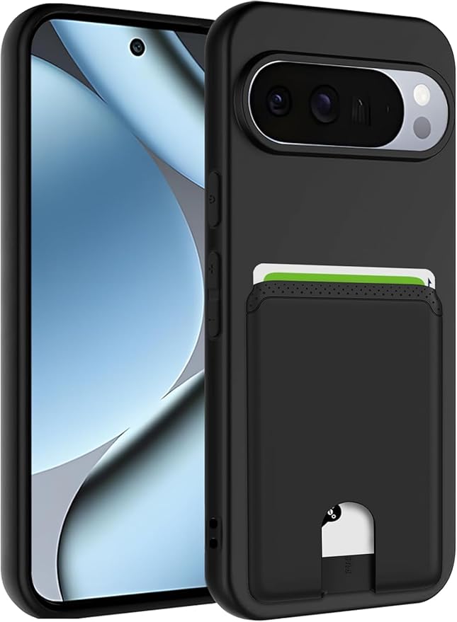 用の Google Pixel 10 ケース 背面収納 3枚カード収納 【指紋防止・軽量・傷防止・滑り止め・柔軟なTPU素材】背面カード収納 ブラック