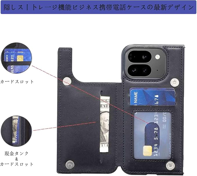 【Aqier】互換性 Pixel 10 Pro Fold 用(ブラック)ピクセル10プロ フォールド スマホケース 背面カード 収納 軽量 多機能 手帳型カバー グーグル pixel10pro fold BLACK