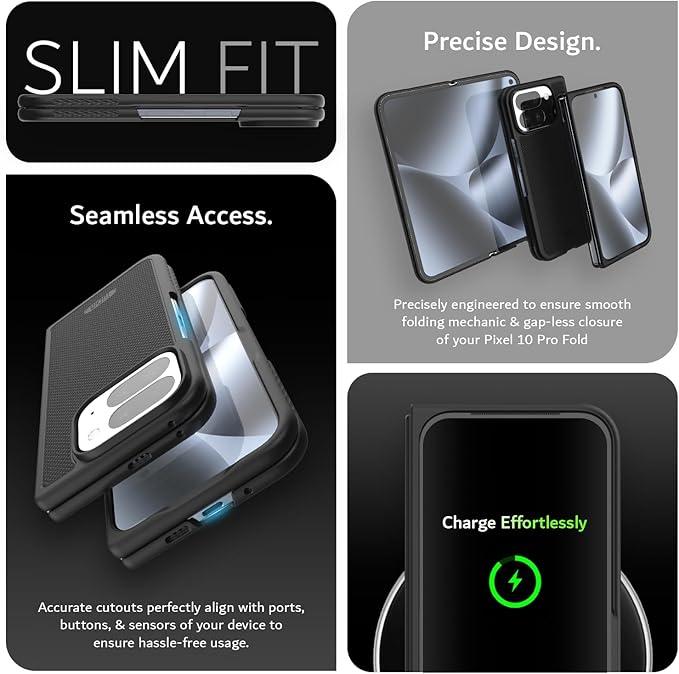 TUDIA「PixelSnap & MagSafe対応」Google Pixel 10 Pro Fold 用 ケース (2025) 「MergeGrip」二層構造 耐衝撃 超薄型PC 滑り止め 軽量 携帯カバー - マットブラック