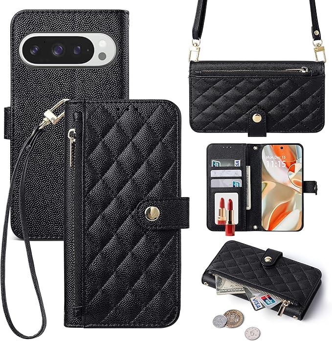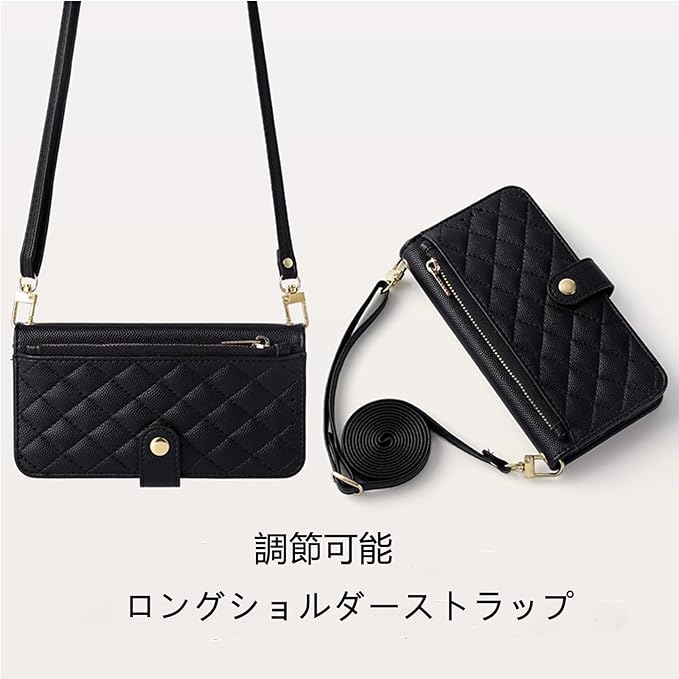 適用 Google pixel 10/10 pro/9/9 pro ケース 手帳型 ピクセル10 ケース ショルダー 2way googleピクセル10 スマホケース キルティング pixel10 スマホケース テチョウガタ ピクセル10カバー 小銭入れ カード収納 スタンド機能 鏡付き 耐衝撃保護 全面保護 TPU 高級PUレザー 携帯ケース (ブラック)