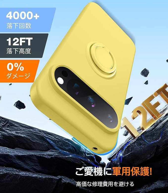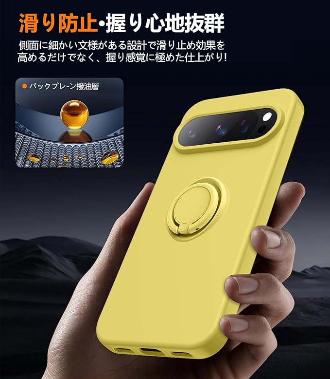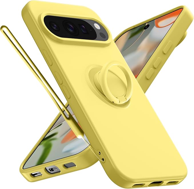 対応 Google Pixel 10 用 ケース リング Pixel 10 Pro ケース ストラップ付き ストラップホール付き ソフト シリコン おしゃれ 耐衝撃 軽量 薄型 スタンド機能 車載ホルダー対応 ピクセル 10 プロ 携帯カバー 黄 R-YTDS-GP10P-05