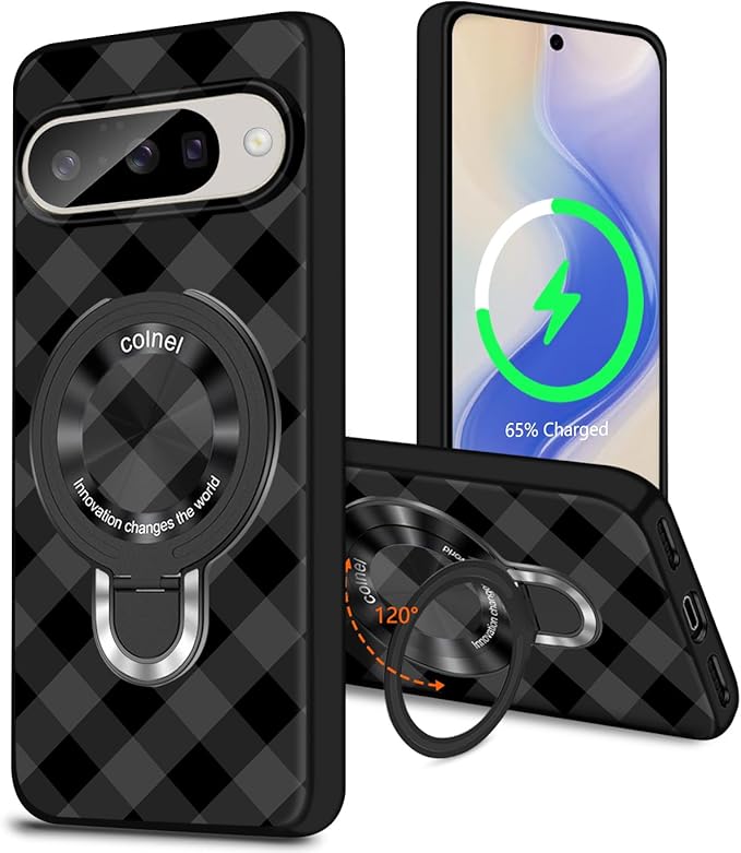 Google Pixel 10/10 Pro ケース MagSafe対応 丸型 スタンド付き マグネット搭載 縦横両対応 ピクセル10/10 pro ケース チェック柄デザイン TPUバンパー 耐衝撃 全面保護