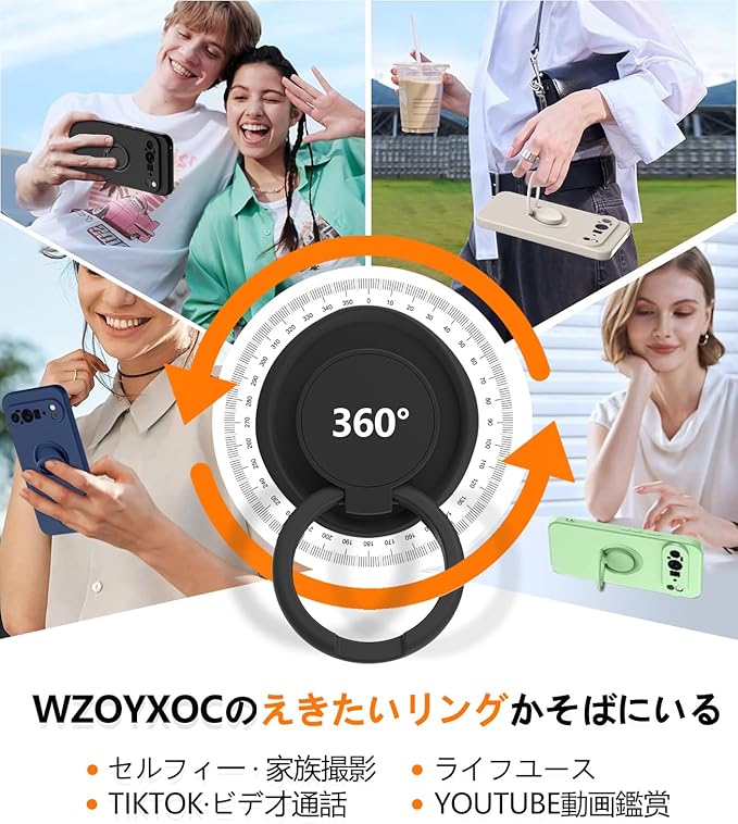【リング付き&スタンド機能】:リングは360度回転可能で、180度の角度調節も可能です。ケースを横置きにするとスタンド機能になり、持たずに動画鑑賞などを楽しむことができます。指をリングに通して一本指で持つことで、片手で携帯電話を操作でき、落下を防止します