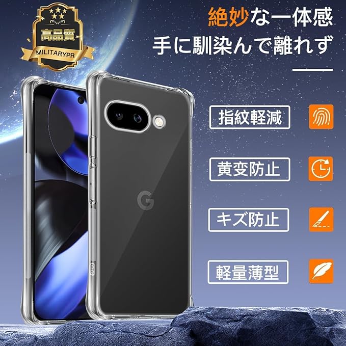 Google Pixel 10A 専用のクリアケースで、スマホ自体の美感と高級感を見事に再現しています。