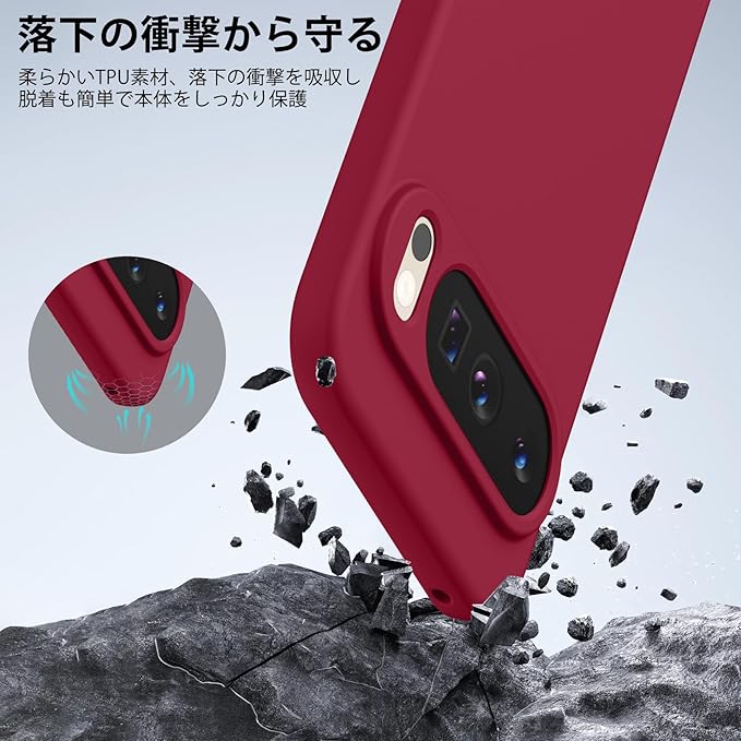 Tgaoleyd Google Pixel 10/Pixel 10 Pro 用ケース シリコン 耐衝撃 衝撃吸収 ストラップホール付き 指紋防止 グーグル ピクセル 10 pro/10 用ケース レンズ保護 tpu ソフトカバー 6.3インチ 一体型液状シリコン 薄型 軽量 人気 携帯カバー 赤 D81-63