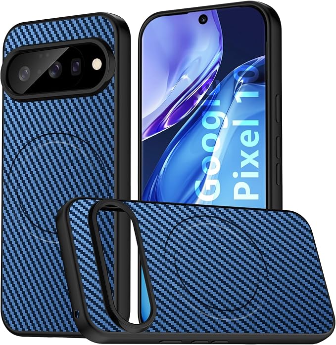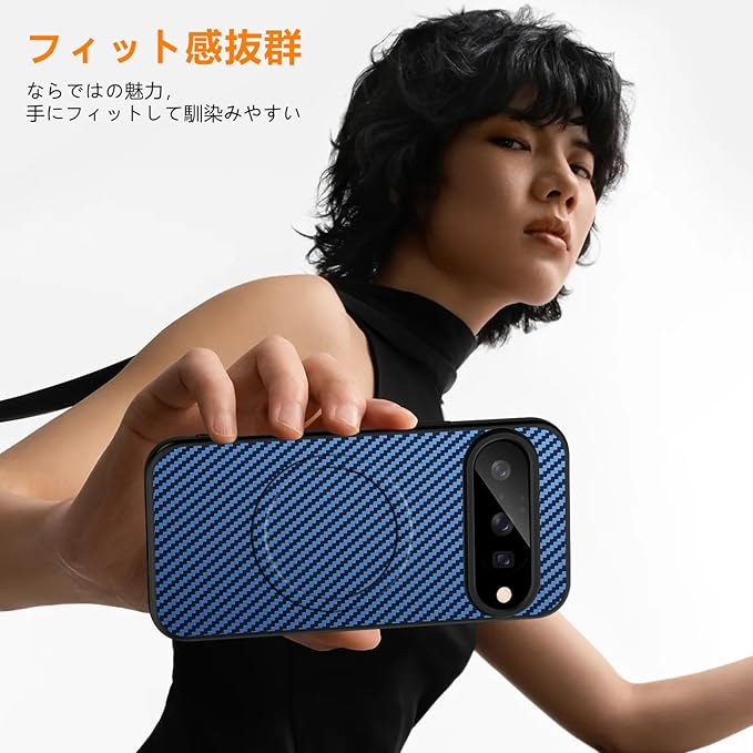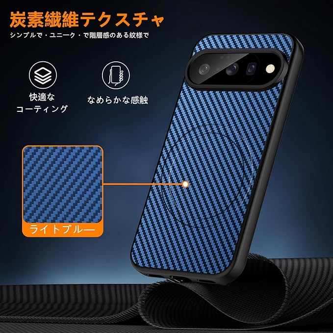 対応 Google Pixel 10 用 ケース 炭素繊維テクスチャ 薄型 軽量 耐衝撃 PC 素材 ワイヤレス充電対応 おしゃれ 指紋防止 防塵 傷防止 人気 ピクセル 10 用 携帯便利カバー ライトブルー (ライト青) MD-TXCX-09-05