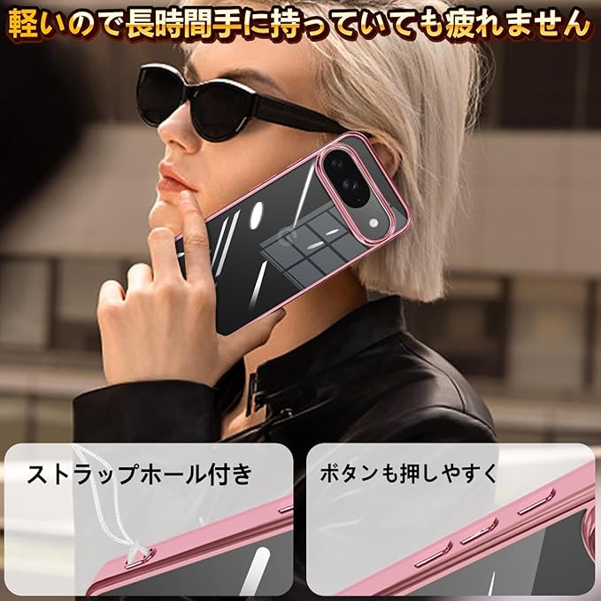 Google Pixel 10 / Pixel 10 Pro ケース クリア ソフトケース ドイツTPU素材採用 100MPa射出成形 真空電鍍フレーム 耐衝撃 黄ばみ防止 レンズ保護 薄型 軽量 カード・写真を挟める DIYデコ 通勤・デート・旅行・オフィス向け(ローズゴールド)