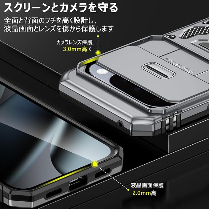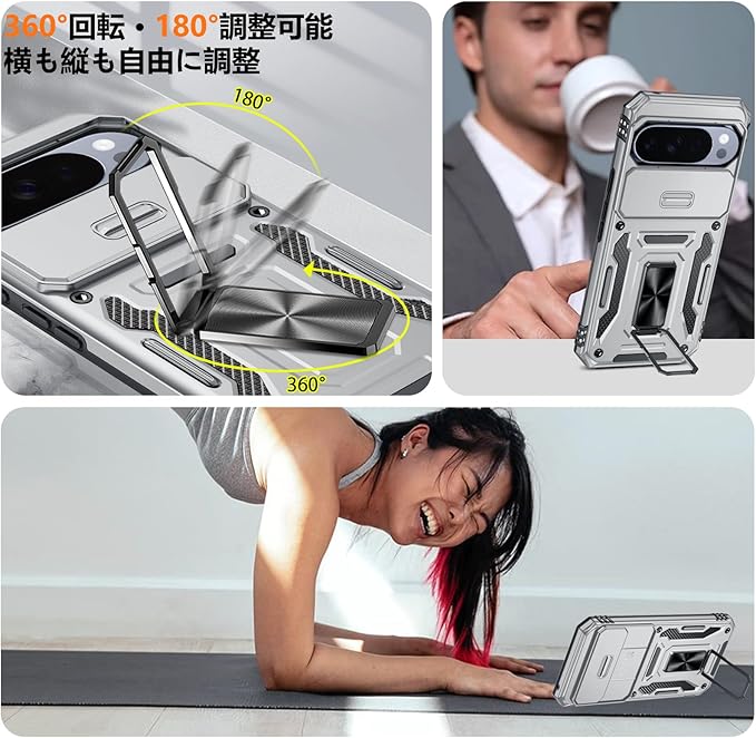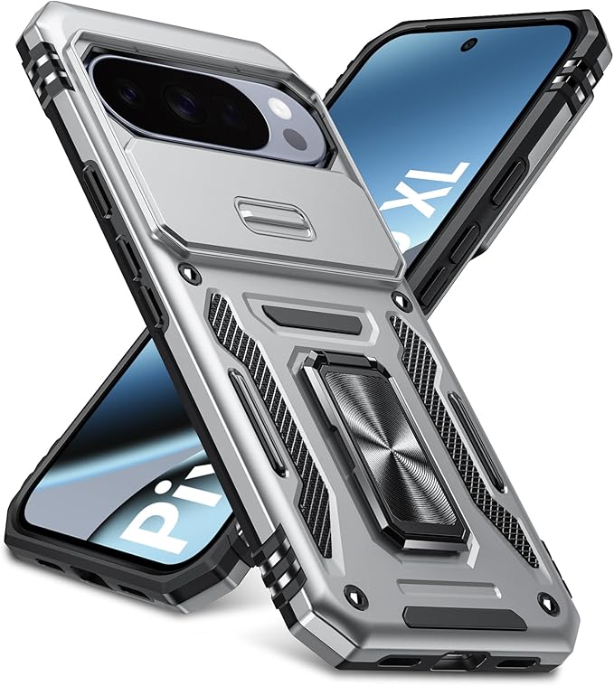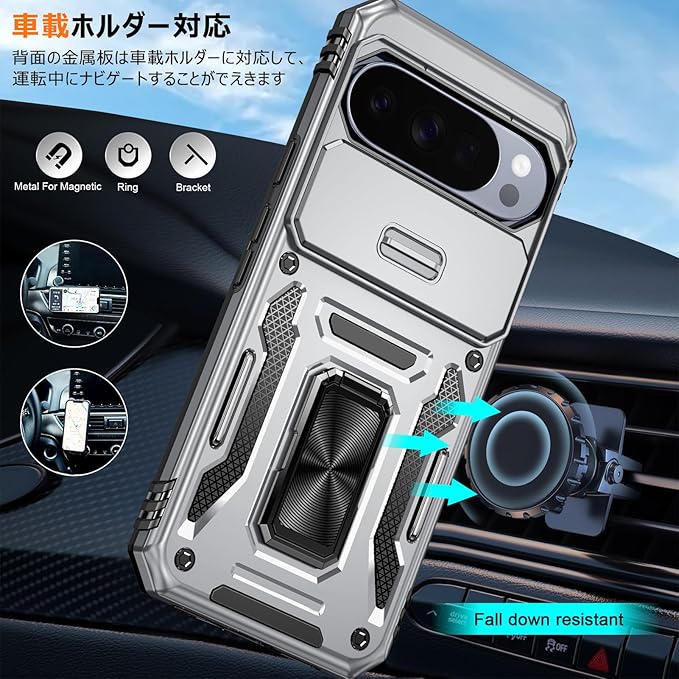 PNEWQNE 対応Google Pixel 10 Pro XL 用のケース リング付き 衝撃吸収 耐衝撃 スタンド機能 米軍MIL規格 グーグル ピクセル10 pro xl 用のケース 全面保護 360 回転 滑り落ちにくい 人気 おしゃれ 携帯カバー グレー WY100-36