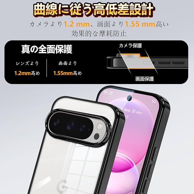 カメラ周りには約2mm高めの縁を設けたレンズ保護設計を採用し、机やテーブルに置いた際もレンズが直接触れにくく、傷や摩耗を防ぎます。透明で使いやすい グーグルピクセル10プロ ケース として、デザイン性だけでなく実用性にも配慮しました。