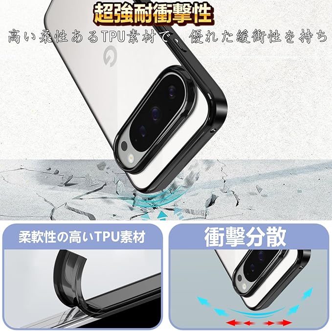 本製品は、柔軟性と耐久性に優れたドイツTPU素材を採用した グーグルピクセル10 カバー です。透明度が高く、クリアな美しさを長く保ちやすい黄ばみ防止設計により、スマートフォン本体の魅力をしっかり引き立てます。スマホケースぐーぐるpixel10 として、見た目と使いやすさの両方を重視したい方に適しています。