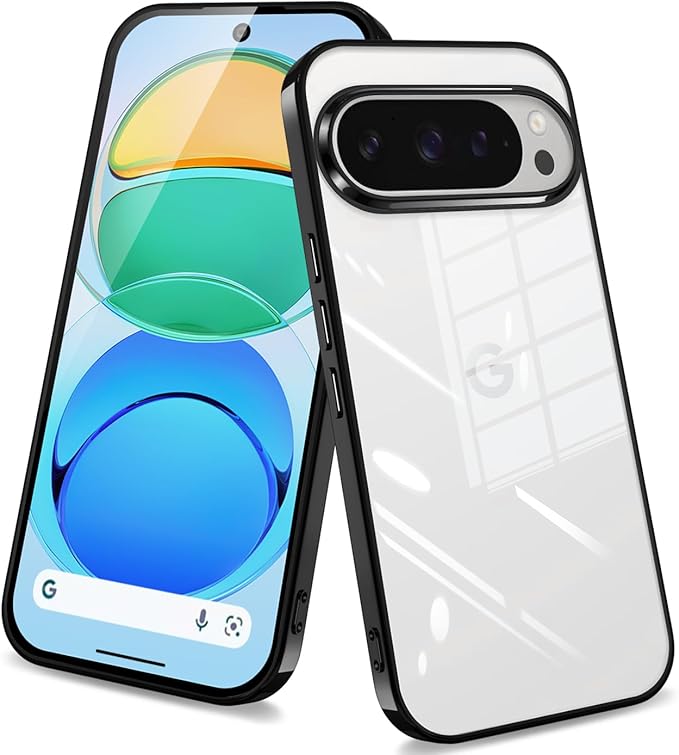 Google Pixel 10 / Pixel 10 Pro ケース クリア ソフトケース ドイツTPU素材採用 100MPa射出成形 真空電鍍フレーム 耐衝撃 黄ばみ防止 レンズ保護 薄型 軽量 カード・写真を挟める DIYデコ 通勤・デート・旅行・オフィス向け(ブラック)
