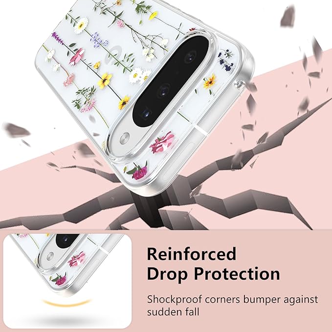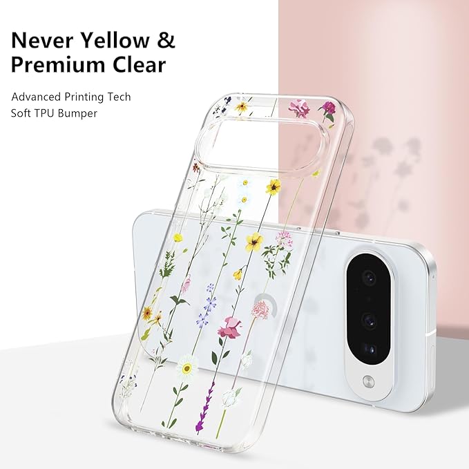 ZTOFERA Google Pixel 10/10 Pro 用花柄ケース かわいい グーグル ピクセル 10/10 Pro クリアケース 韓国 透明 おしゃれ 花 フラワーケース 薄型 軽量 柔軟な ソフト TPU スマホケース 人気 女子 耐衝撃 画面レンズ保護 携帯電話カバー