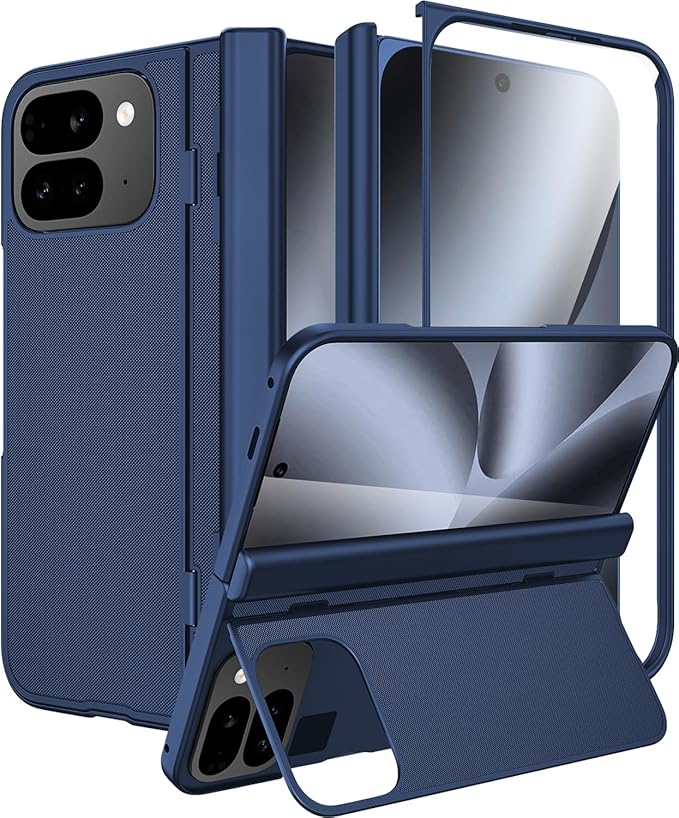 Miimall for Google Pixel 10 Pro Fold スタンド付き保護ケース シェル&フィルム一体型 ヒンジ保護 マット質感 グーグル ピクセル10 プロ フォールド スマホケース ワイヤレス充電対応 耐衝撃/防塵/耐落下/防滑ケース ハードカバー(ブルー)