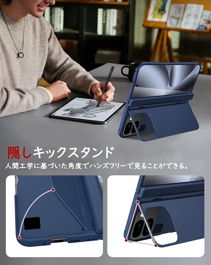 【折りたたみ式スタンド】Pixel 10 Pro Foldの超薄型保護ケースは、スタンドをヒンジ部分に巧妙に収納。未使用時は完全に折りたたむことが可能です。このPC素材のスタンドはヒンジを保護しながら、快適な使用体験を提供。動画鑑賞、日常業務、ビデオ通話など多様なシーンのニーズに対応し、いつでも大画面での映画鑑賞体験とラグジュアリーなライフスタイルを享受できます。