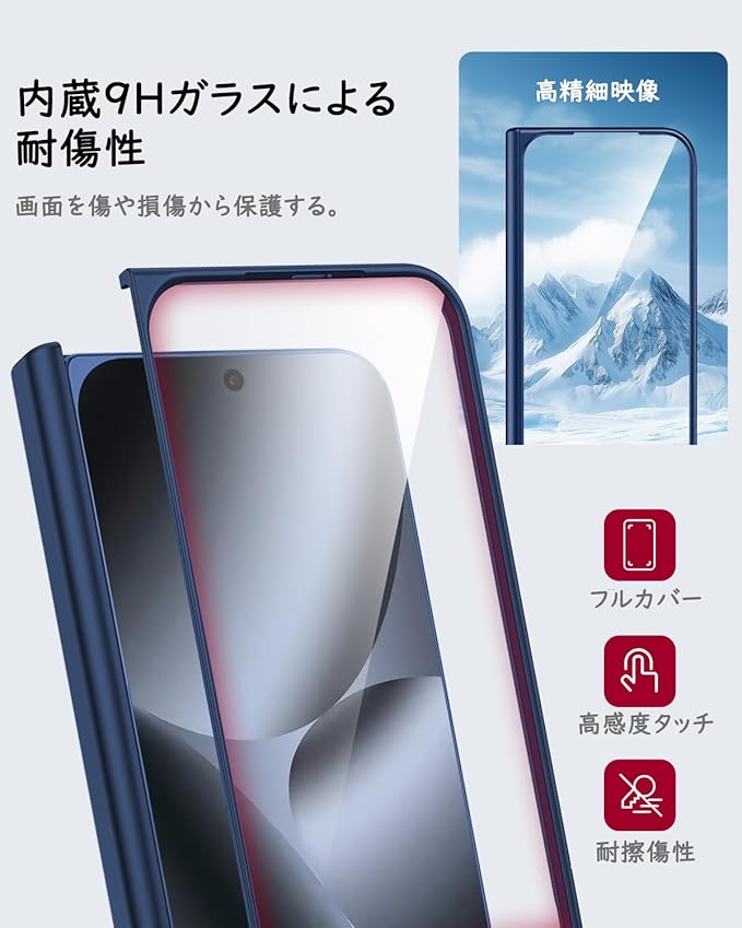 【耐衝撃・全方位保護】このPixel 10 Pro Foldケースは前面スクリーンに9H強化ガラスフィルムを標準装備。クリアな視認性を保ちつつ、耐擦傷性・防塵性・滑り止め機能を実現。(注:より良い使用感を得るため、他の強化ガラスフィルムとの併用はお控えください。)背面カバーには軍用規格PC素材を採用し、落下衝撃を効果的に吸収。頑丈で耐久性に優れたケースがスマートフォンを全方位から守り、ピクセル10 プロ フォールドを常に最高の状態に保ちます。
