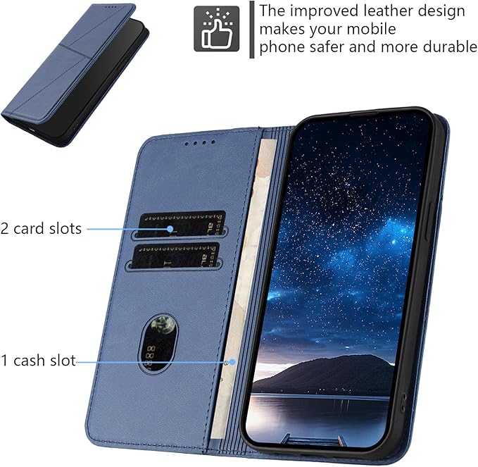 厳選された素材、快適な手触りこの携帯電話ケースはPUレザー製で、手触りがよく、耐摩耗性と耐傷性に優れています。長期間使用しても色褪せや変形しにくいです。内蔵の高弾性TPUソフトシェルが携帯電話のフレームをしっかりと包み込み、落下の衝撃を効果的に吸収します。二重の保護を提供しながら、携帯電話にエレガントなビジネス感覚も与えます。ブラケット機能で両手が自由になります携帯電話ケースのフラップ部分にはキックスタンド機能が巧みに組み込まれています。フラップを一定の角度に折り曲げると、携帯電話ケースがデスクトップにしっかりと固定され、快適な視野角が得られます。ビデオの視聴、ビデオ通話、ドキュメントの閲覧など、このスタンド機能は簡単にニーズを満たし、個人の好みに応じて角度を微調整できます。安心して保管できる隠しカードスロット2 つのカードスロットは、銀行カード、交通カード、その他のカードが簡単に落ちることなく正確に保管できるように配慮して設計されています。マネークリップも付いていますが、少額のお金しか入りません。日々の生活に便利さをもたらします。ダメージを軽減する全方位保護フリップカバーのデザインは携帯電話の画面を外部環境から巧みに隔離し、指紋や汚れを効果的に防ぎます。柔らかい TPU の内側シェルは衝撃を緩和し、携帯電話の落下の衝撃を軽減し、携帯電話を効果的に保護します。絶妙な仕立て、目に見える品質携帯電話ケースの全体的な仕上がりは精巧で、携帯電話の輪郭にぴったりフィットします。ボタンやインターフェースの位置には正確な穴が確保されており、携帯電話の通常の操作に影響を与えません。角が丸くなっているので、より安全で快適に使用できます。
